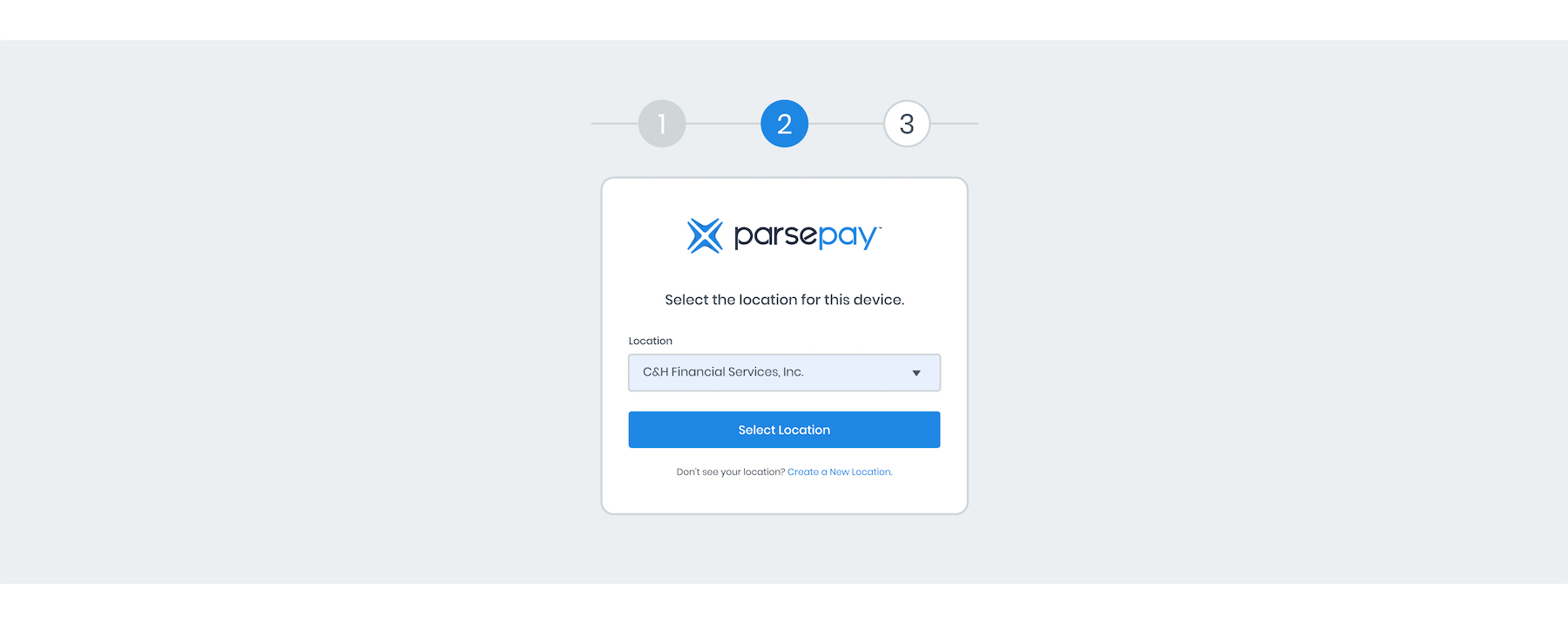 Find and select the location for this device from the drop-down menu. Once the location is selected, tap the Select Location button to proceed to the next step. If you don’t see your location from the drop-down menu, tap the Create a New Location link and enter the location information.