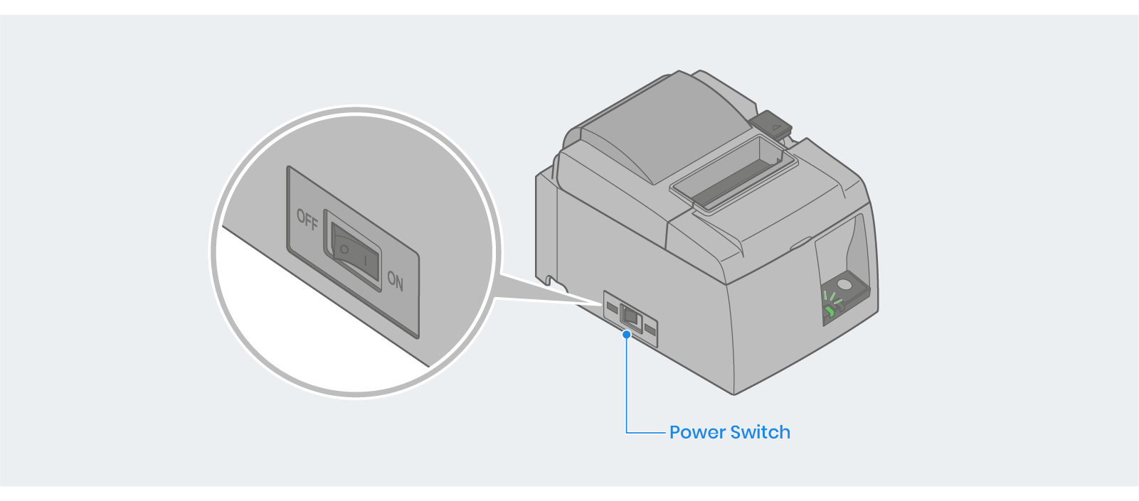 Power Switch: Used to turn on/off the power of the printer