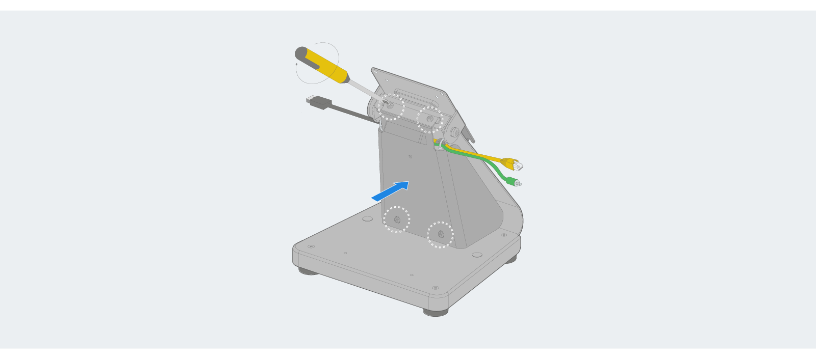 Mount the display to the flip stand using the screws provided.