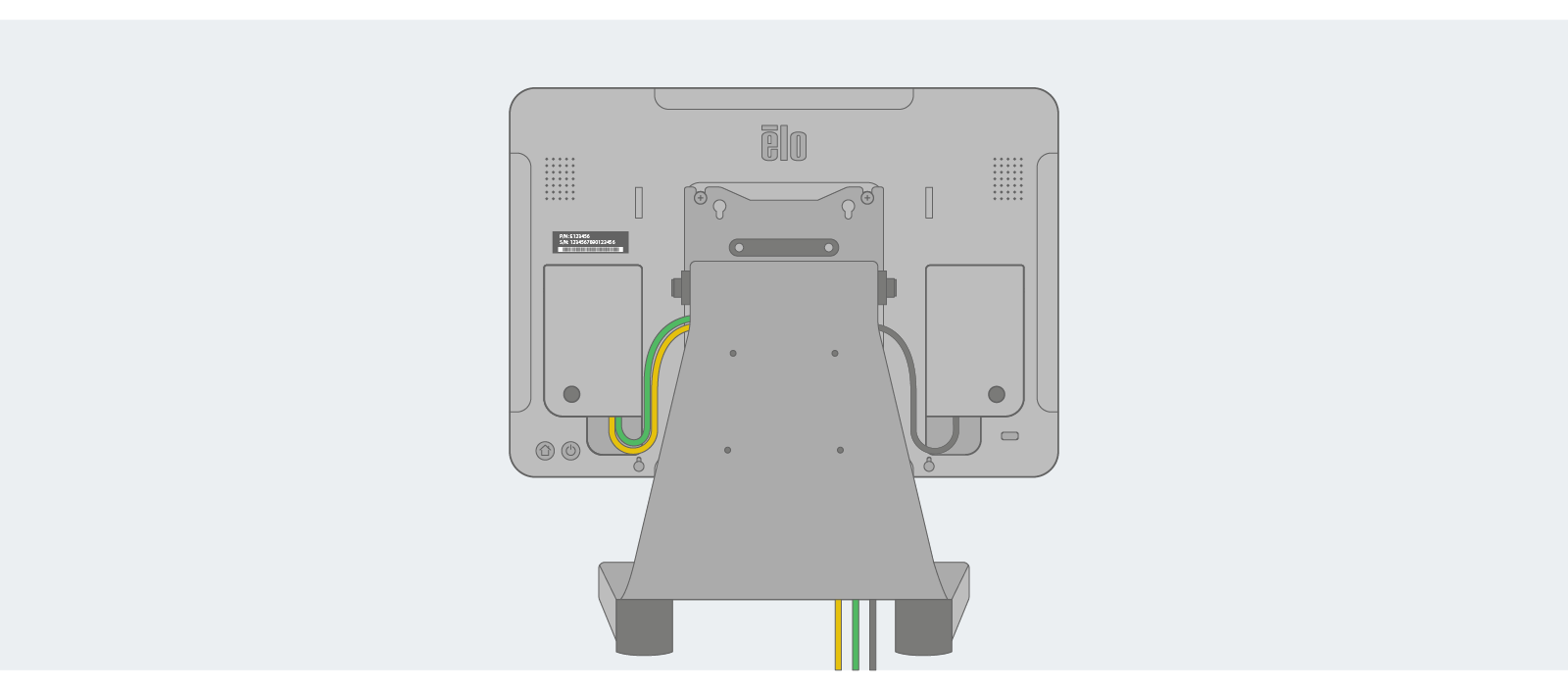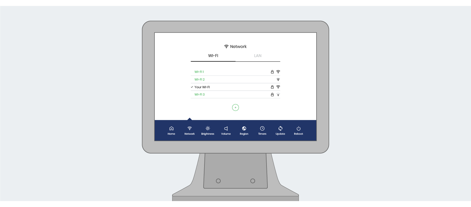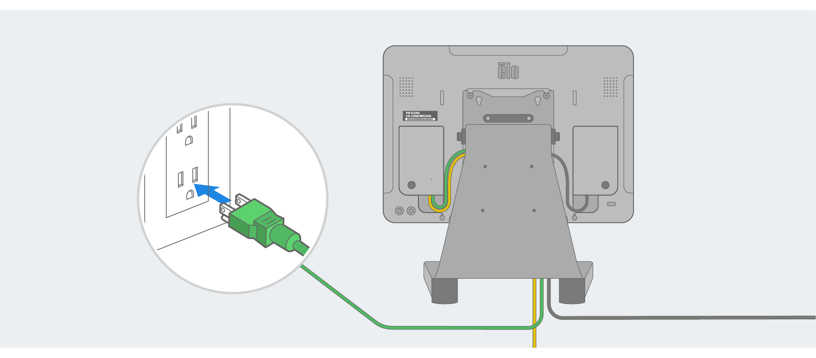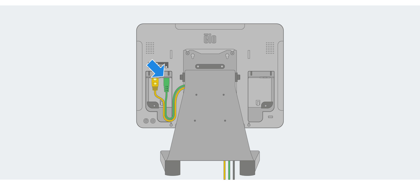 With the display securely mounted, connect the ethernet cable to the ethernet port (if using a hardwired connection).